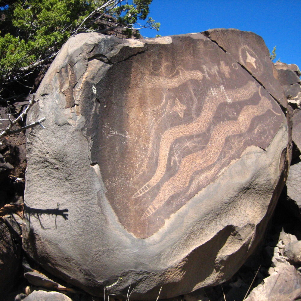 Time permitting, wander off the main path and explore Newspaper Rock. You will be able to view more striking Rio Grande petroglyphs left in the basalt rocks by the Ancient Puebloans.